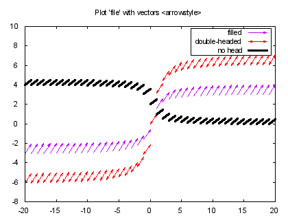 '2.dat' using 1:2:(+1):(+1) with vectors lt 1 heads title 'double-headed', \