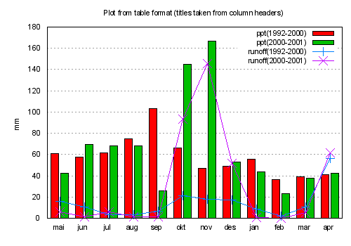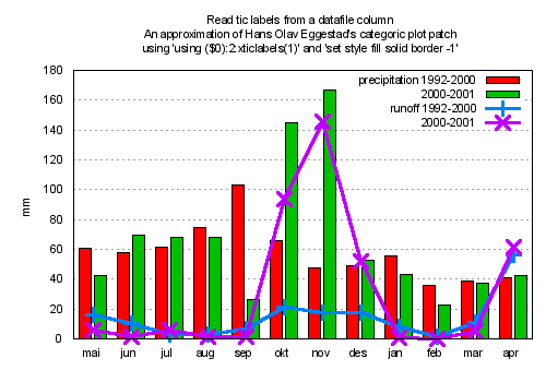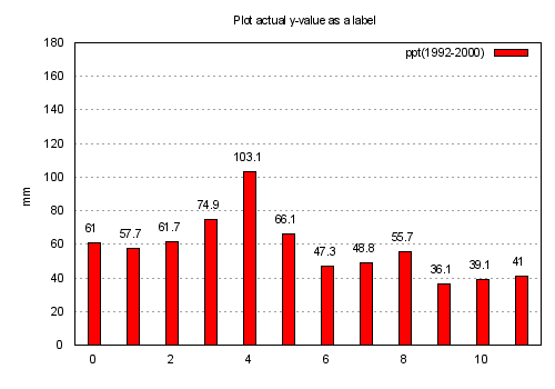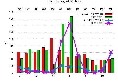 plot 'ctg-y2.dat' using ($0-0.2):2 index 0 with boxes title "precipitation 1992-2000", \