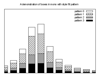 set title "A demonstration of boxes with style fill solid border -1" set style fill solid border -1 replotClick here for minimal script to generate this plot