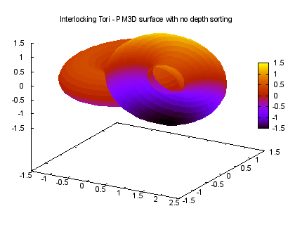 set title "Interlocking Tori - PM3D surface with no depth sorting"