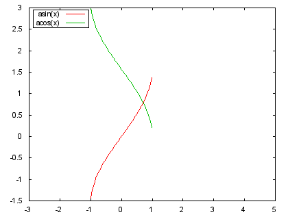 set key left box set samples 200 plot [-3:5] asin(x),acos(x)Click here for minimal script to generate this plot