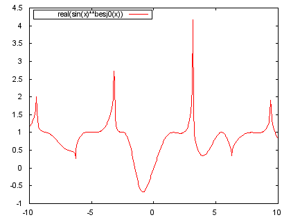 set samples 400 plot [-10:10] real(sin(x)**besj0(x))Click here for minimal script to generate this plot