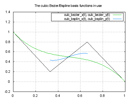 set title "The cubic Bezier/Bspline basis functions in use"