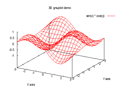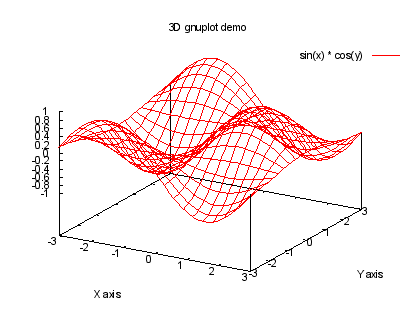 splot [x=-3:3] [y=-3:3] sin(x) * cos(y)Click here for minimal script to generate this plot