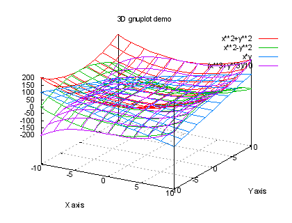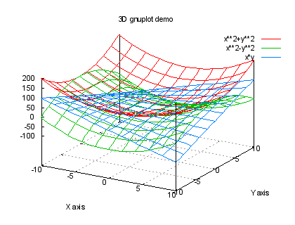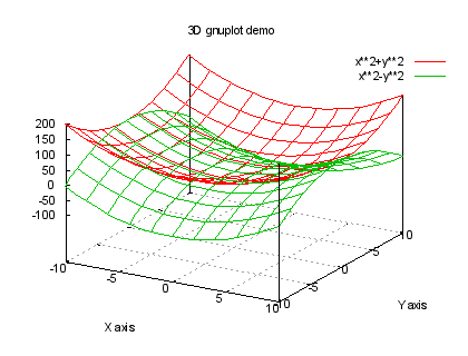 unset arrow unset label set grid splot x**2+y**2, x**2-y**2Click here for minimal script to generate this plot