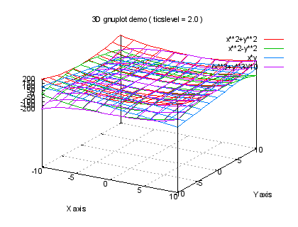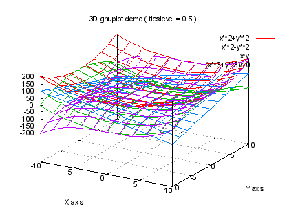 set ticslevel 0.5 set title "3D gnuplot demo ( ticslevel = 0.5 )" repClick here for minimal script to generate this plot